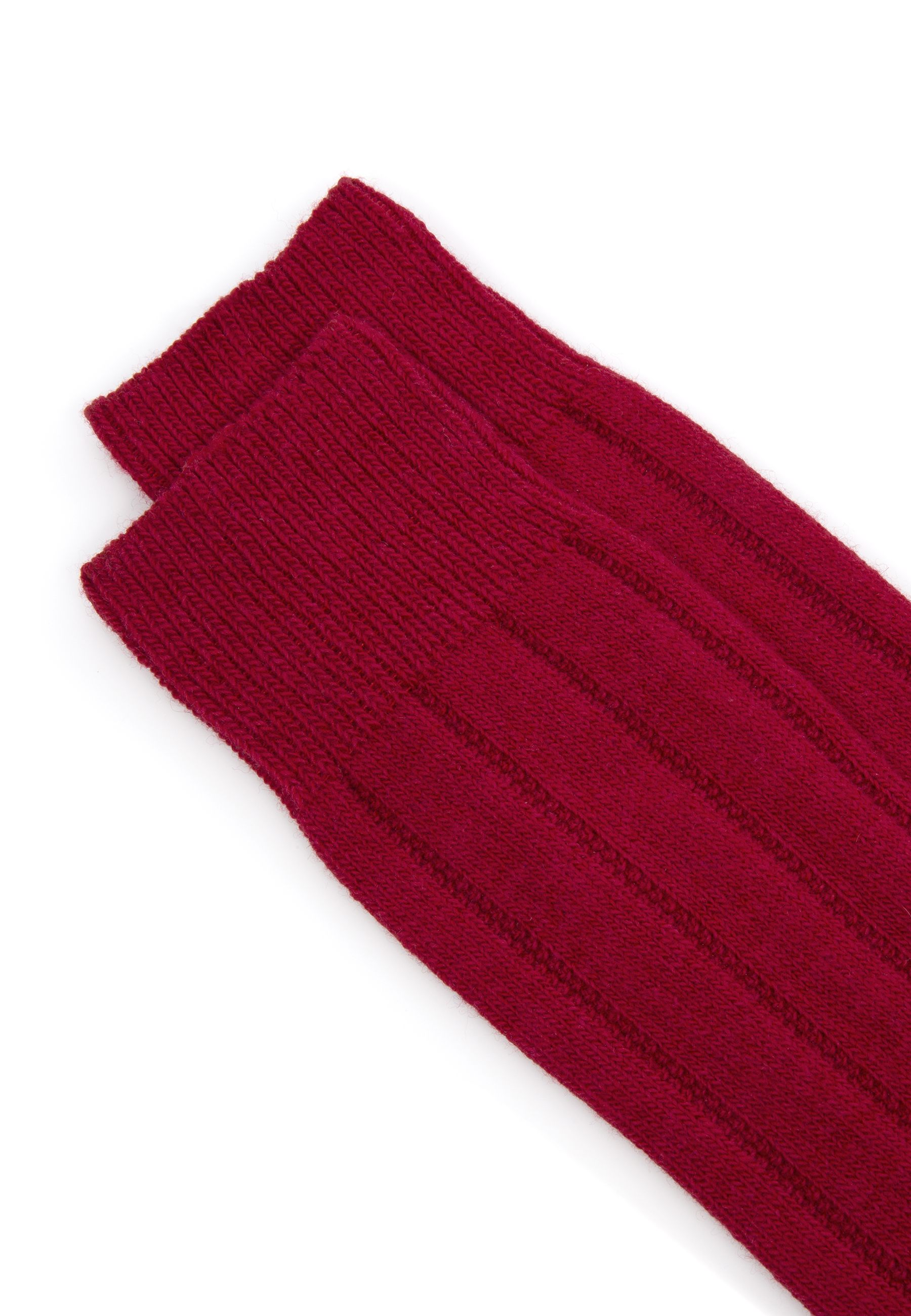Calze corte in misto cashmere, costa larga e lavorazione traforato leggeri.
