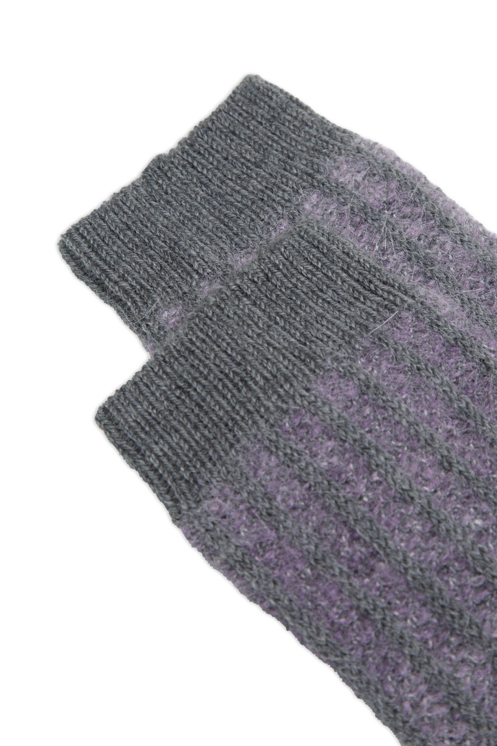 Short sock in printed mohair, soft and warm, with vertical rib pattern and wool on toe, heel, and cuff.
