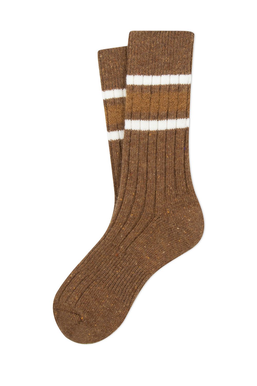 Calze corte in lana grossa doppio capo, tinta unita, costa larga e dettaglio costina stretta sul piede.