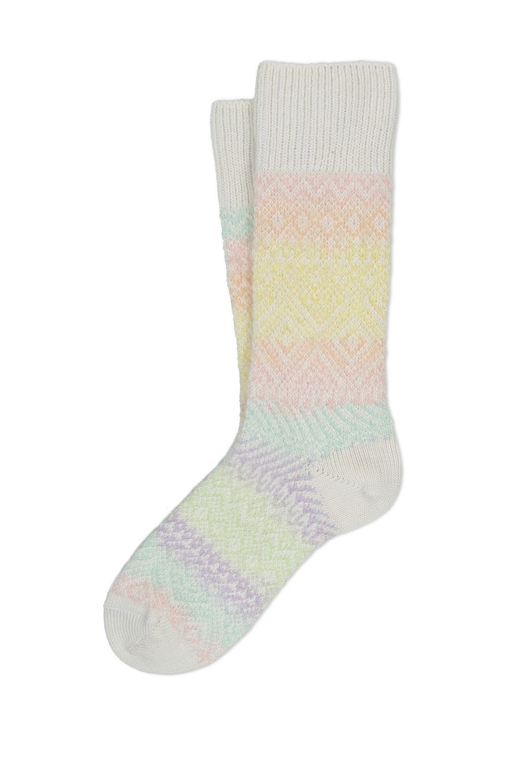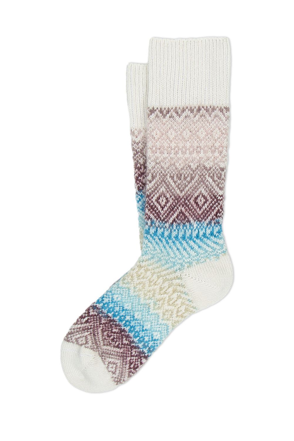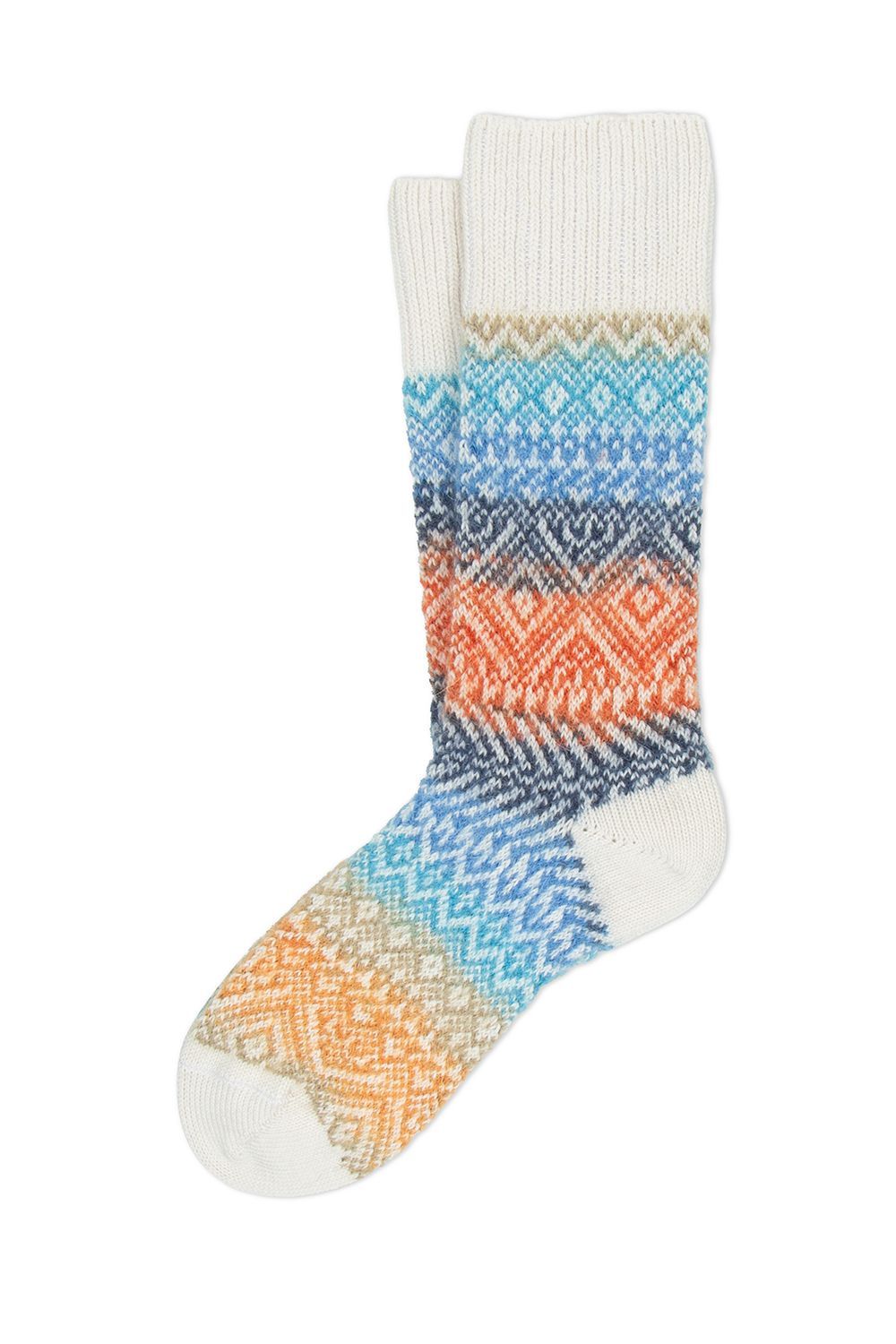 Calze corte in cotone e mohair stampato, disegno azteco e punta e tallone rinforzati e a contrasto.