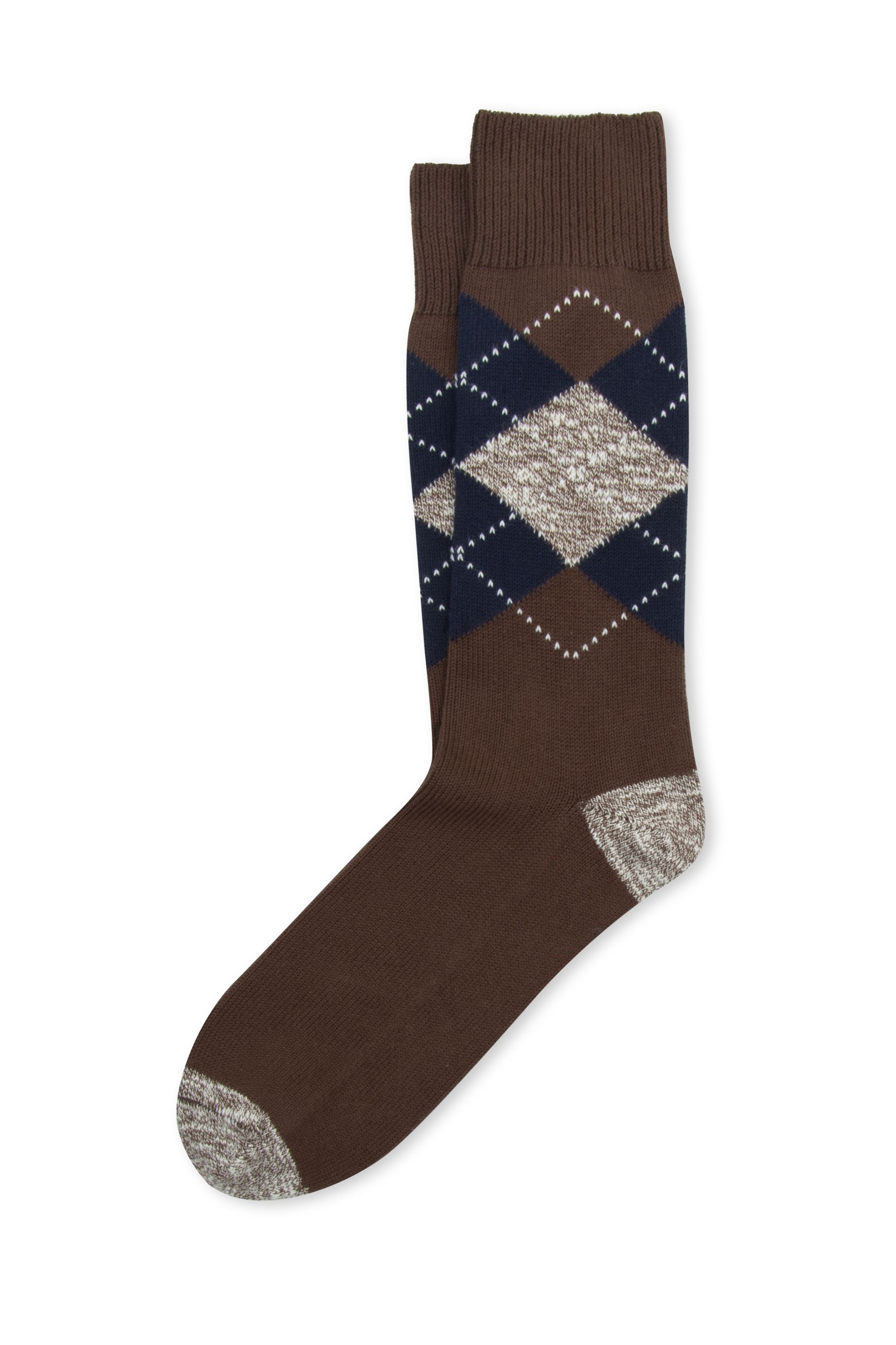 Calze uomo corte in cotone, fantasia argyle marrone