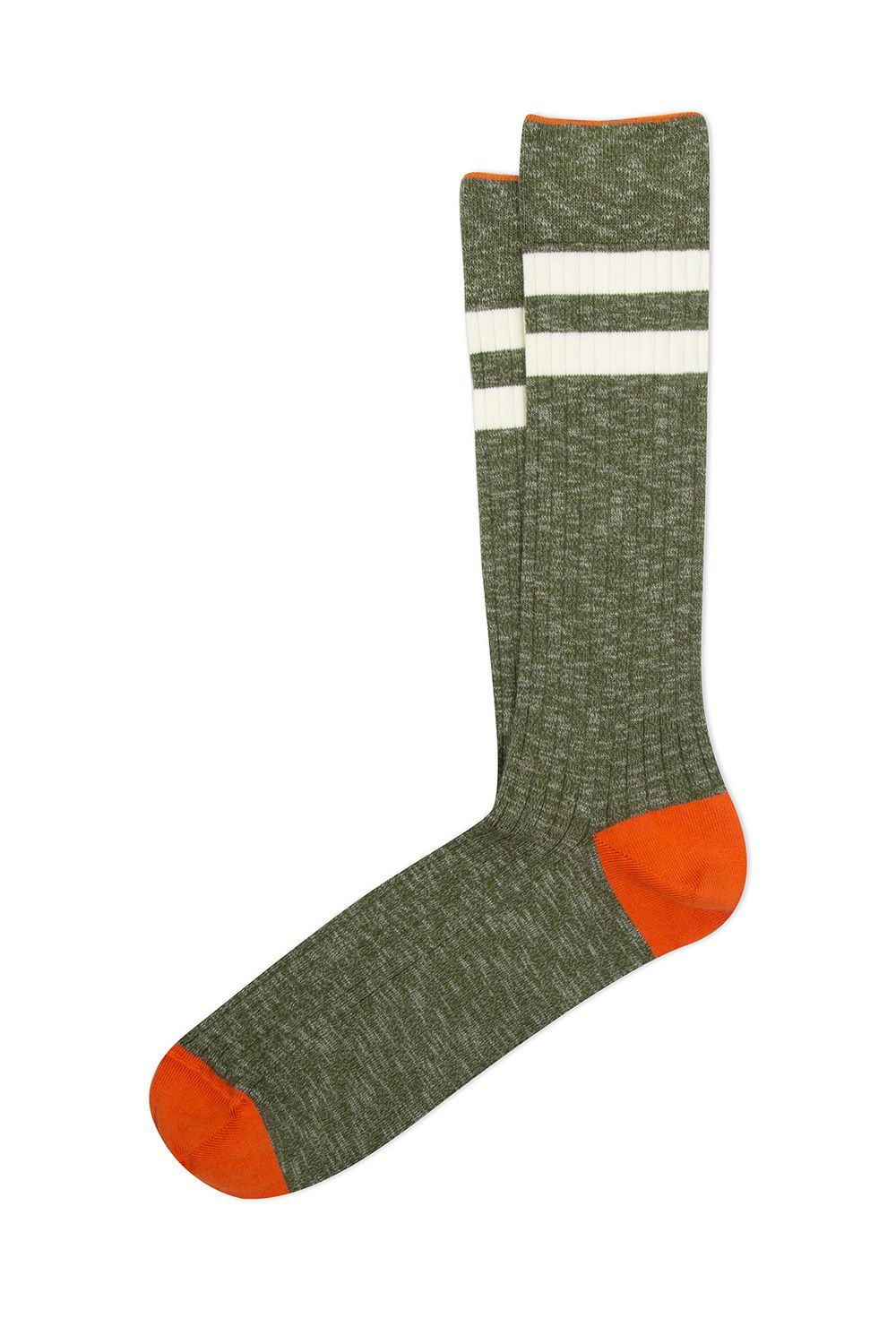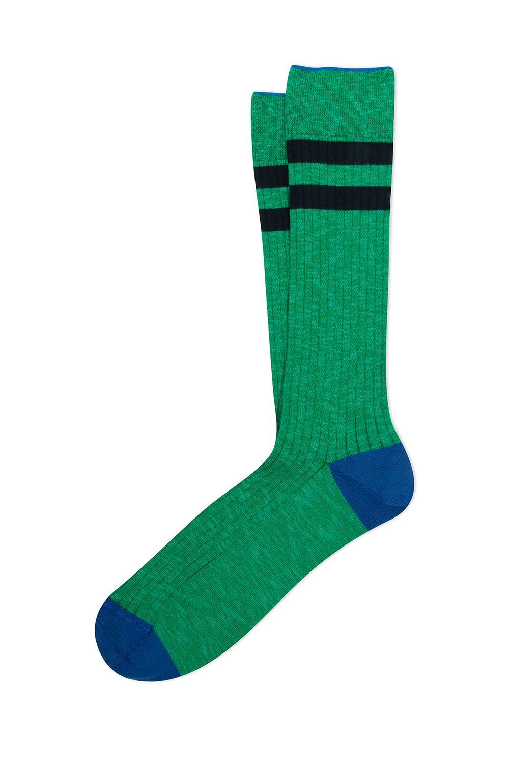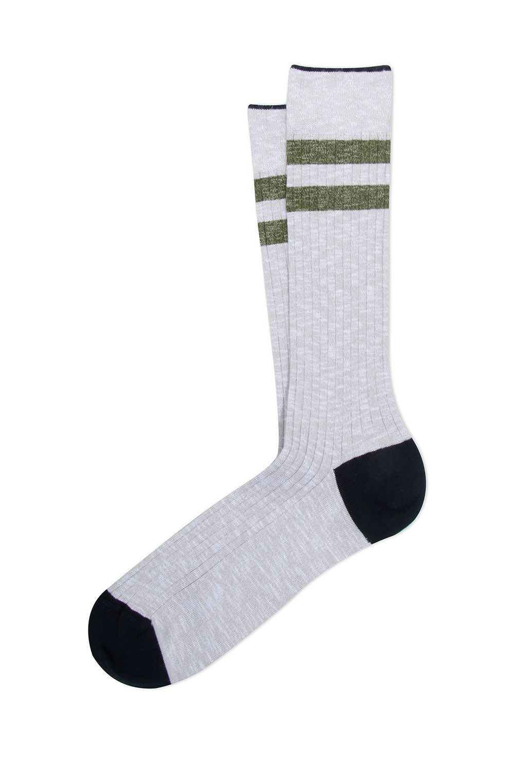 Calza in cotone melange a coste, dettaglio righe colorate sul polso.