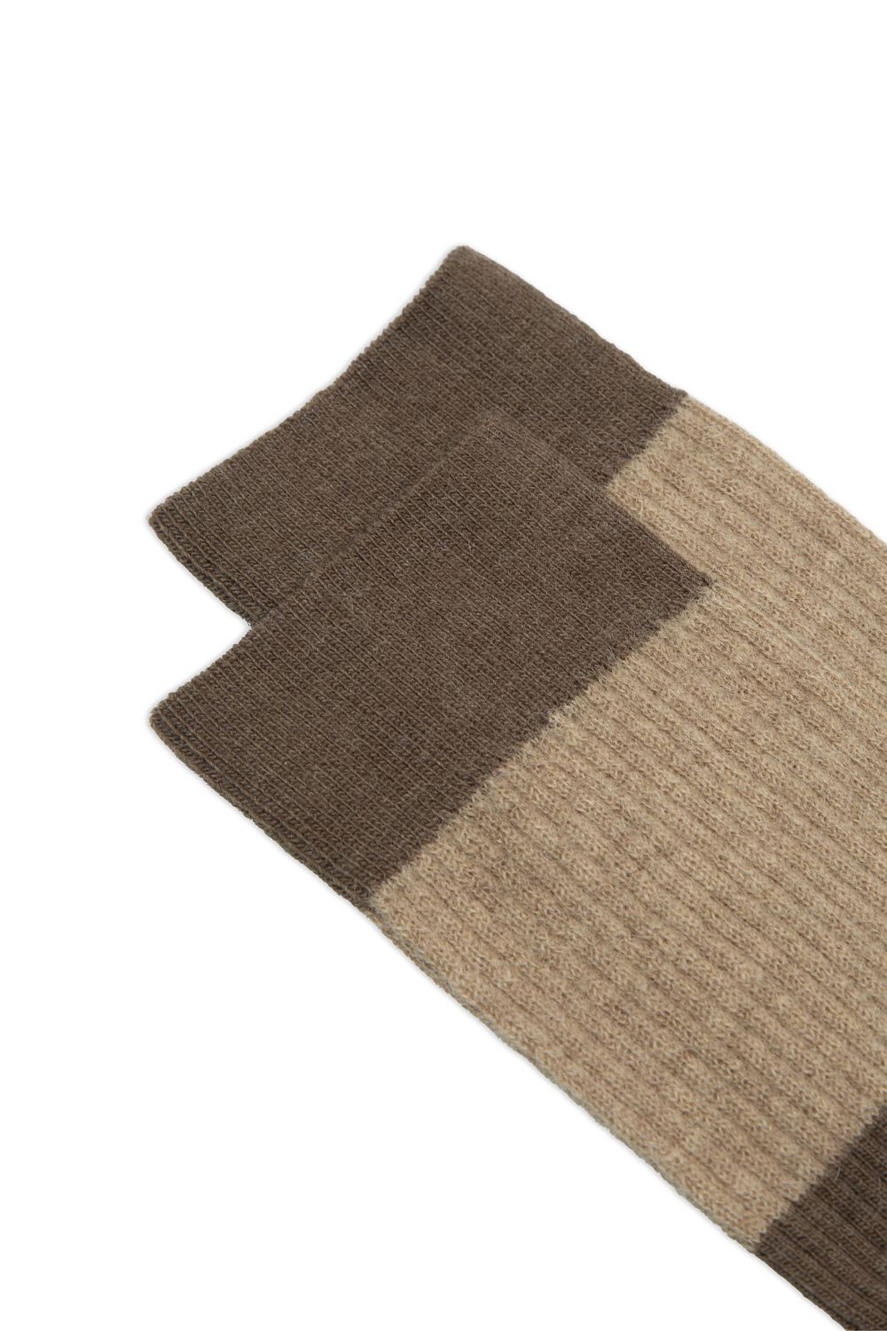 Calze corte in mohair leggero a rigoni orizzontali, lavorazione a costa stretta.