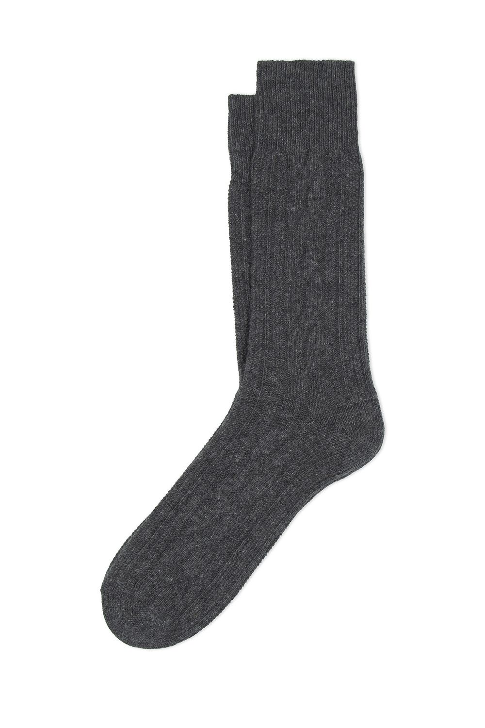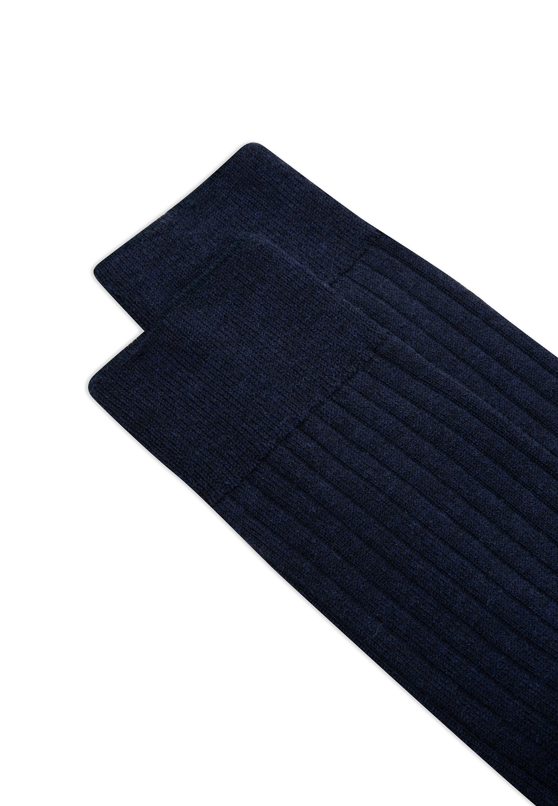 Calze lunghe in lana merino a coste, punta e tallone rinforzati.