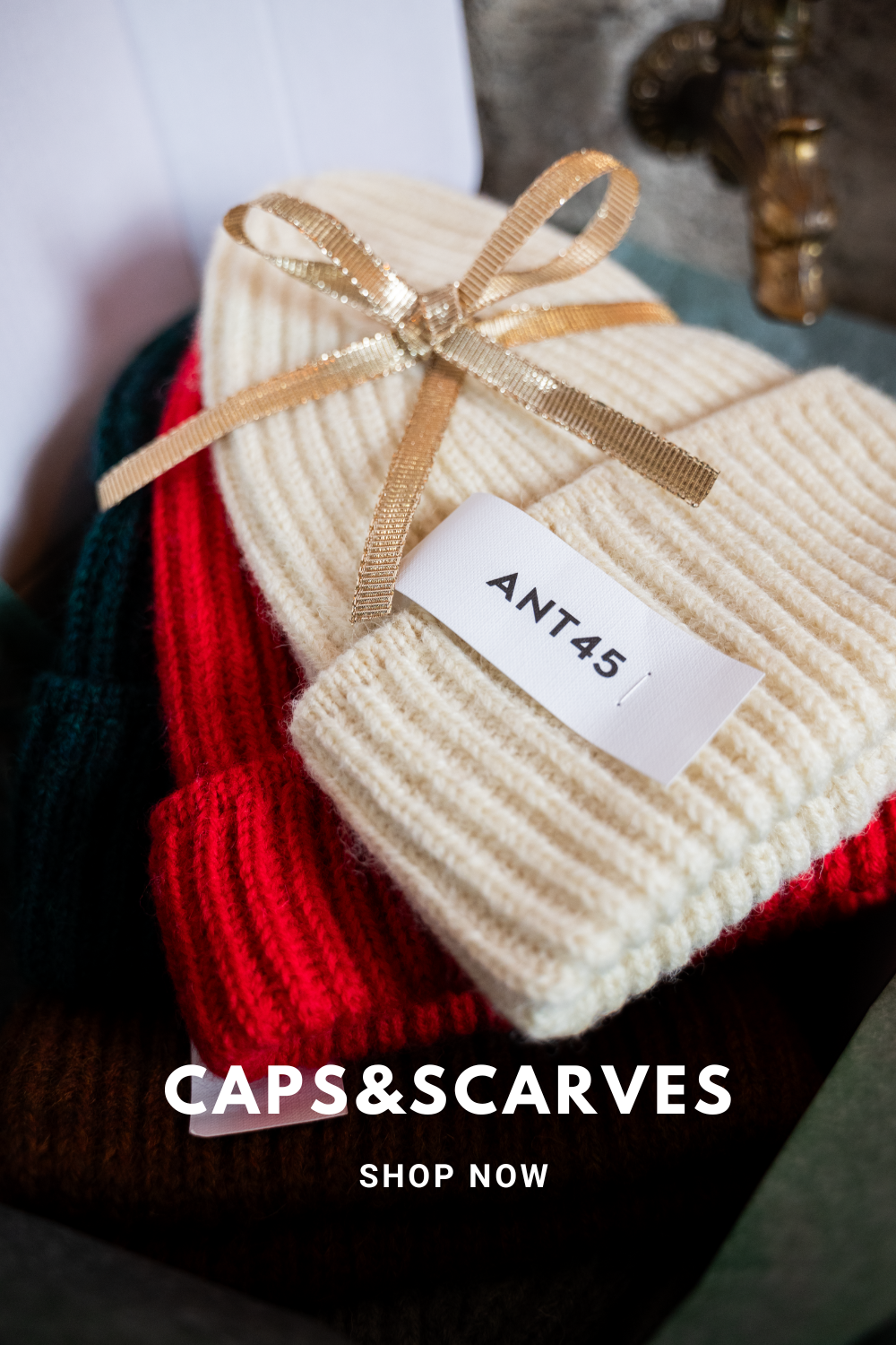 Scopri la nostra selezione di calze in cashmere e lana, sciarpe eleganti e berrette calde, ideali per rendere speciali le festività.