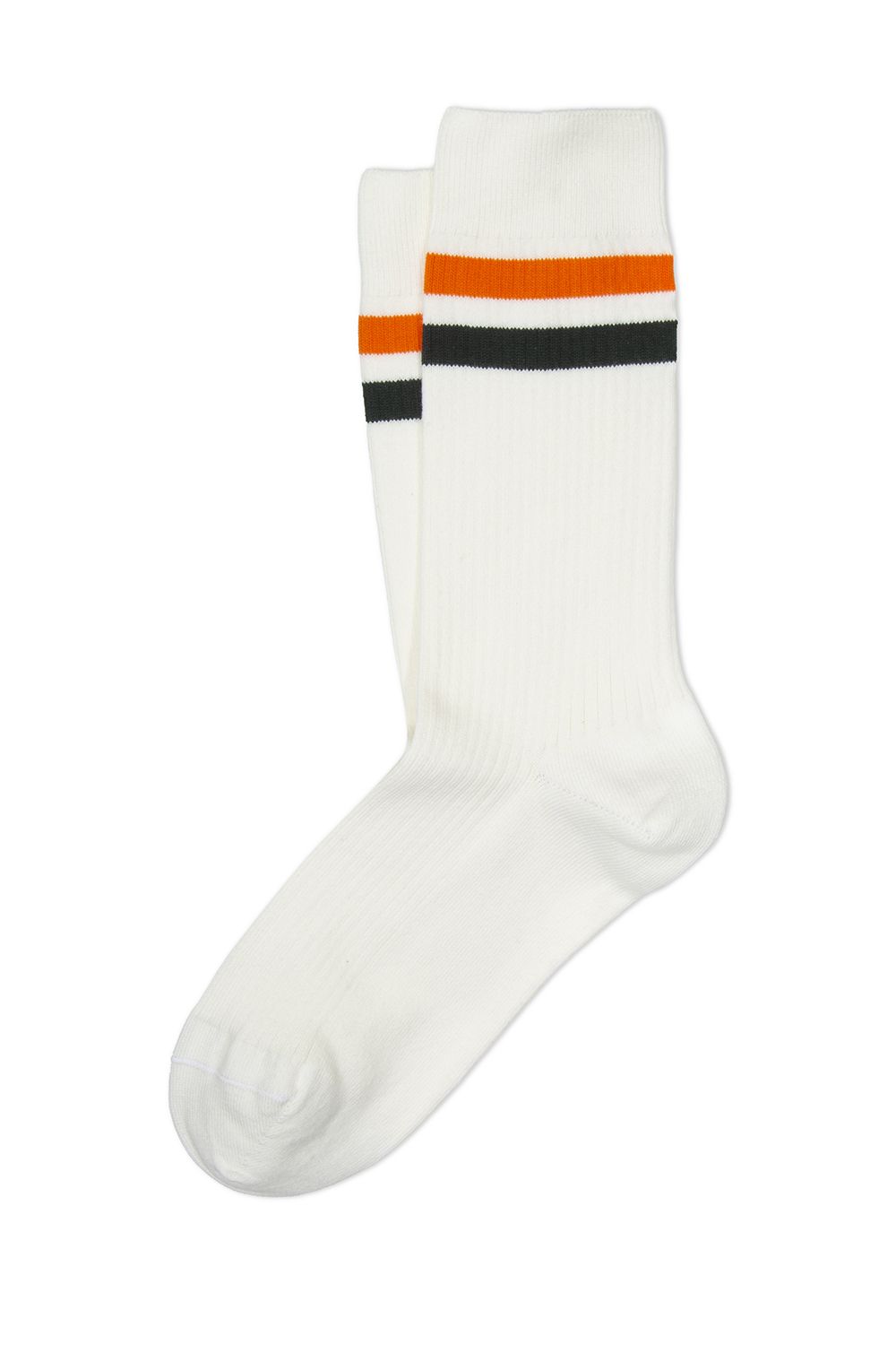 Calza corta in spugna di cotone con due righe colorate sul polso.