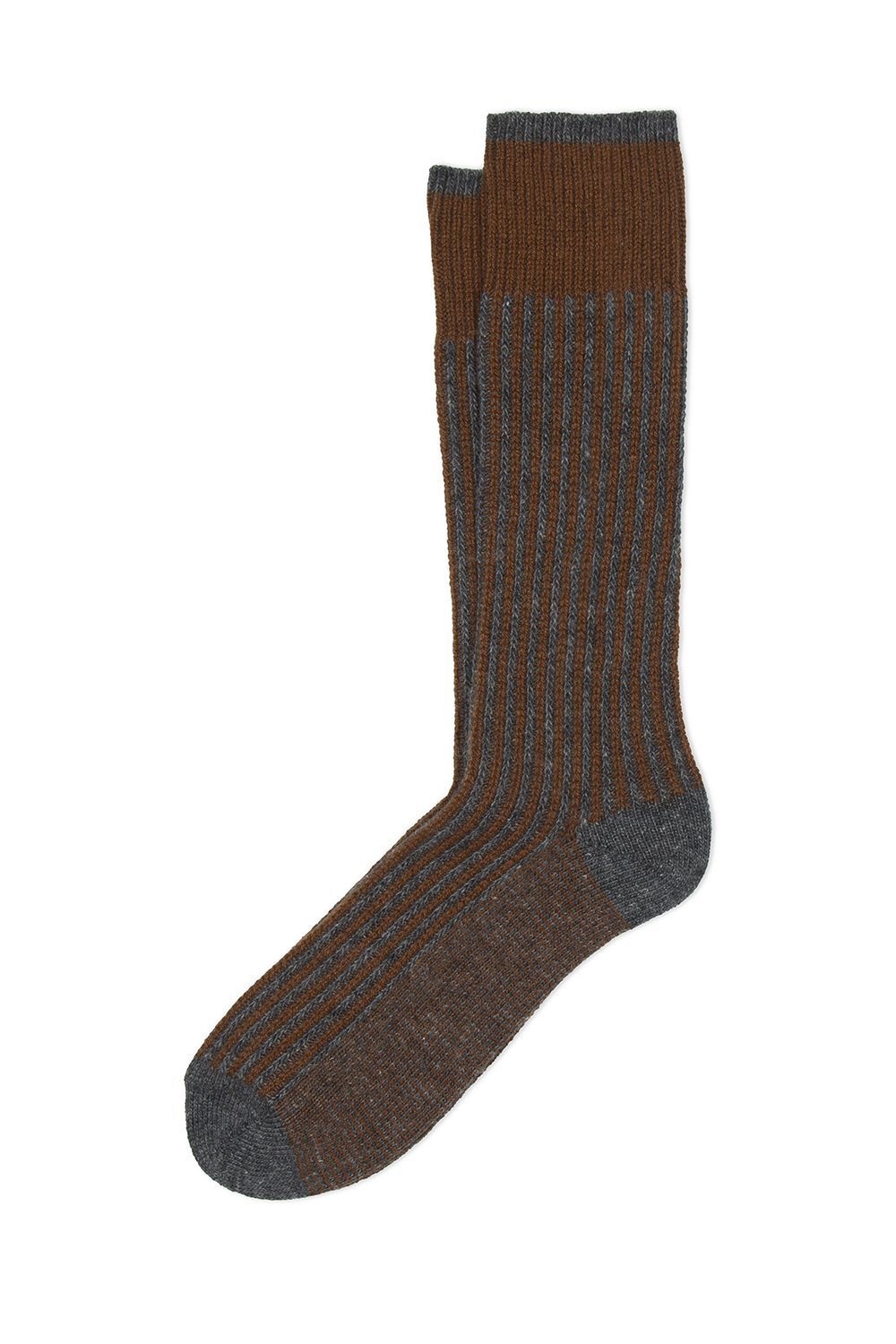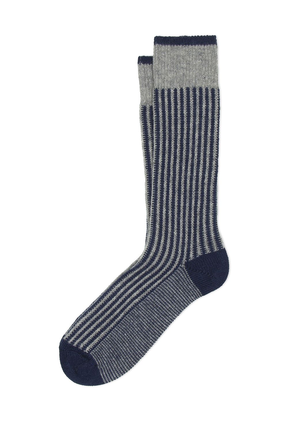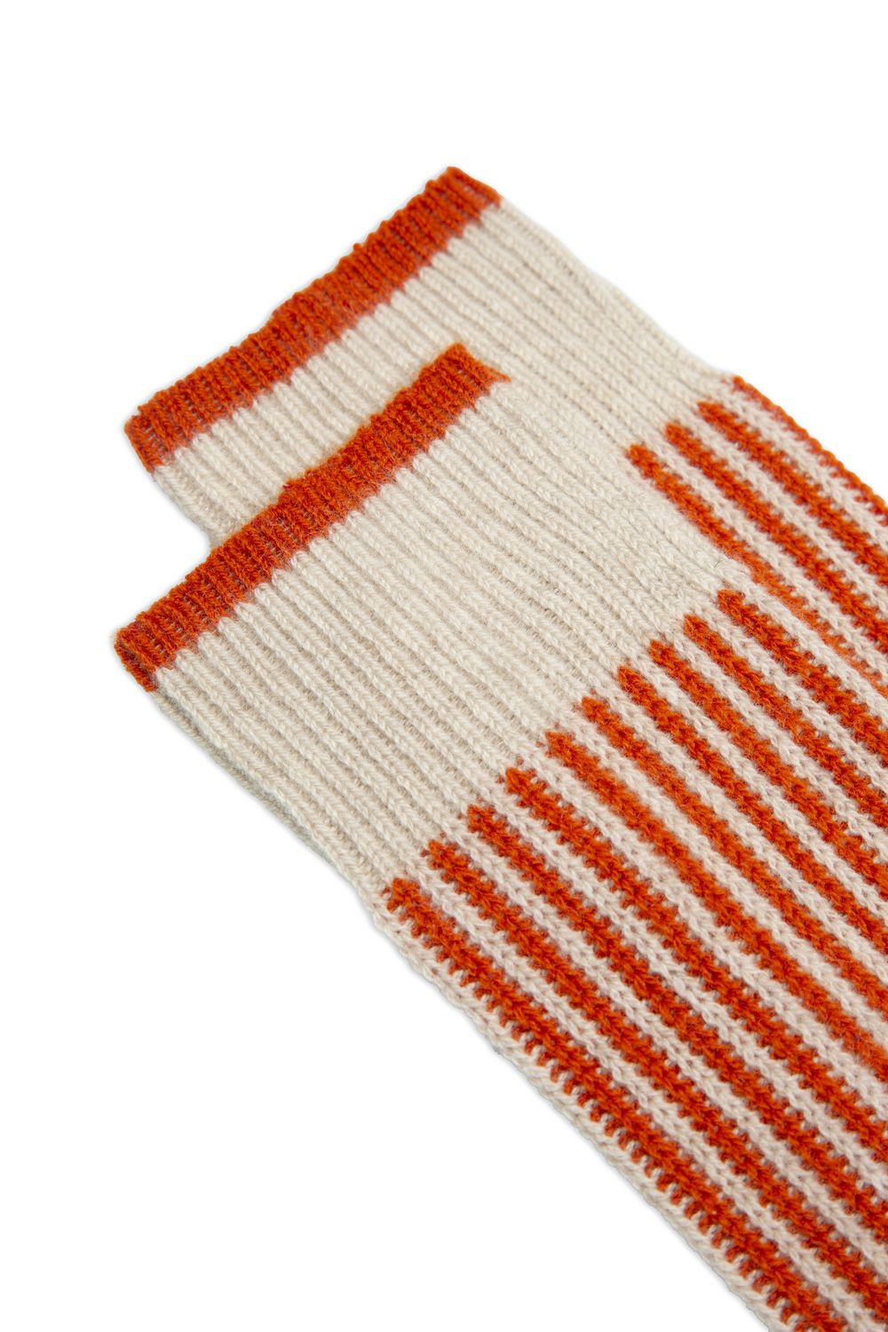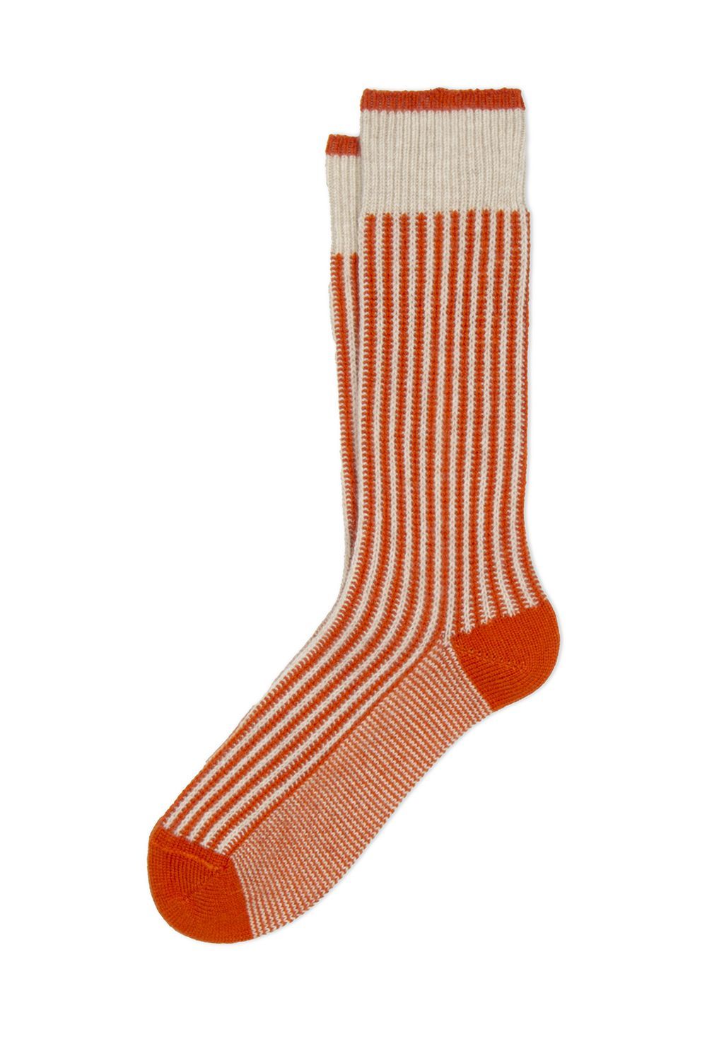 calze corte in cashmere, a righe e coste verticali in rilievo.