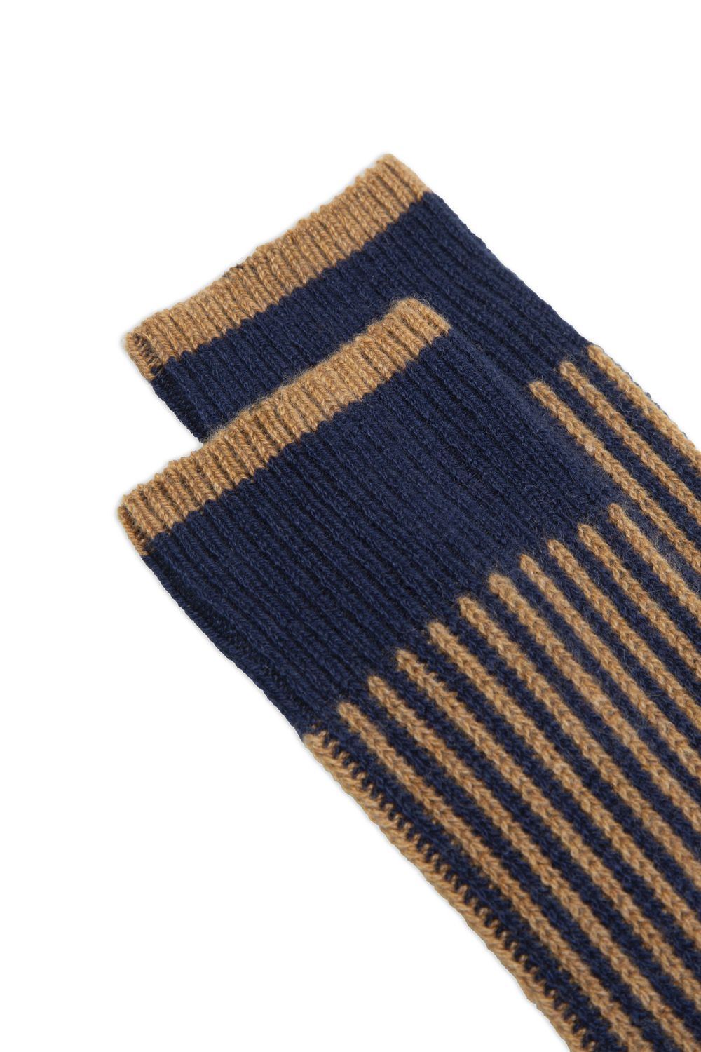 calze corte in cashmere, a righe e coste verticali in rilievo.